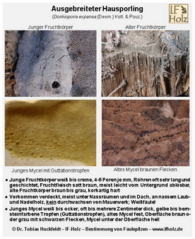 Kurze Informationskarte zum Ausgebreiteten HausporlingKurze Informationskarte zum BalkenblättlingKurze Informationskarte zum Echten Hausschwamm
